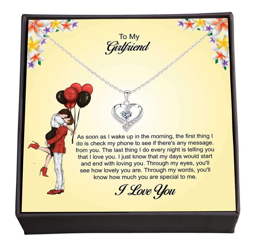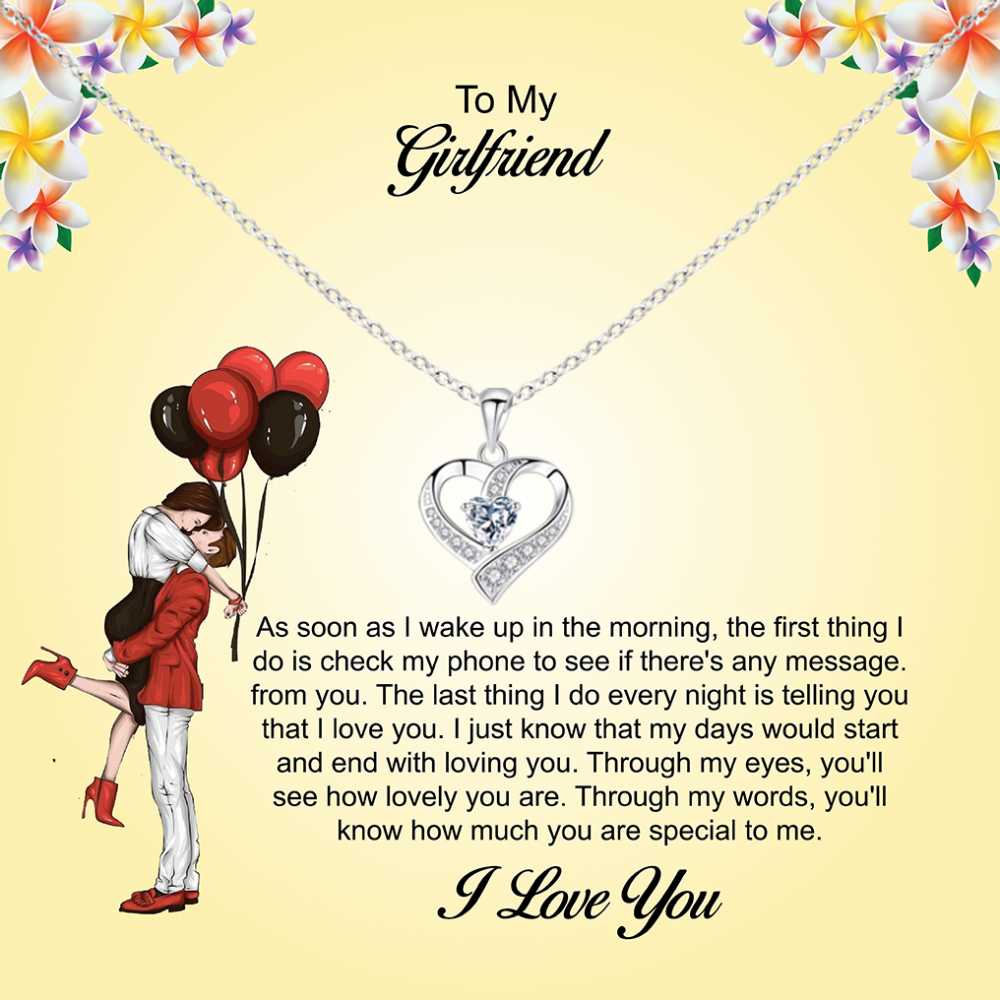 Bling Queen is an affordable fashion jewellery brand with various product types like bracelets, necklaces, earrings, rings, etc. suitable for women, men and kids. The silver zirconia heart pendant necklace is a beautifully crafted piece, ideal for expressing your love for your girlfriend. This necklace features a heart shaped pendant that sparkles with radiant zirconia stones, capturing the light and adding a touch of elegance to any outfit. The heart symbolizes your deep affection, making it a meaningful accessory she can wear close to her heart. The pendant hangs gracefully from a delicate silver chain, designed to complement the neckline beautifully. Accompanying the necklace is a thoughtfully designed message card featuring a playful couple balloon design in the background. Together, the necklace and message card create a perfect gift that combines beauty with emotional depth. This thoughtful combination ensures that she will not only appreciate the elegance of the necklace but also cherish the love it represents.