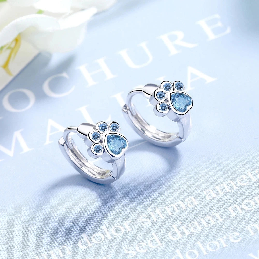 Zircon Cat Claw Earrings Silver Studs for Women Girl