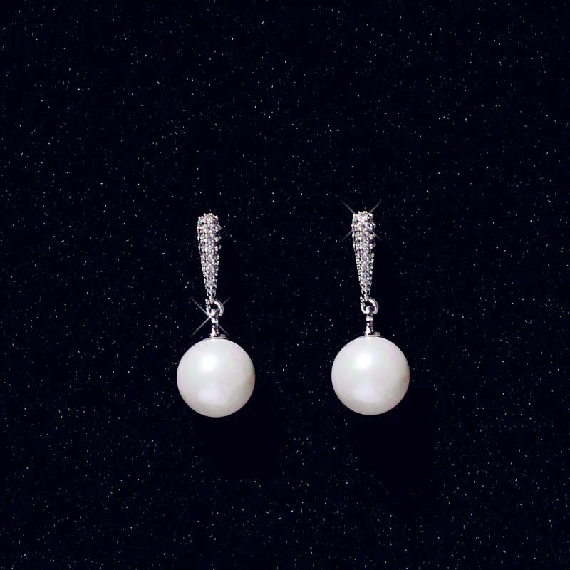 Add a touch of elegance to your outfits with these stunning zircon earrings featuring shell pearl studs on 925 sterling silver. Perfect for formal occasions or everyday wear.