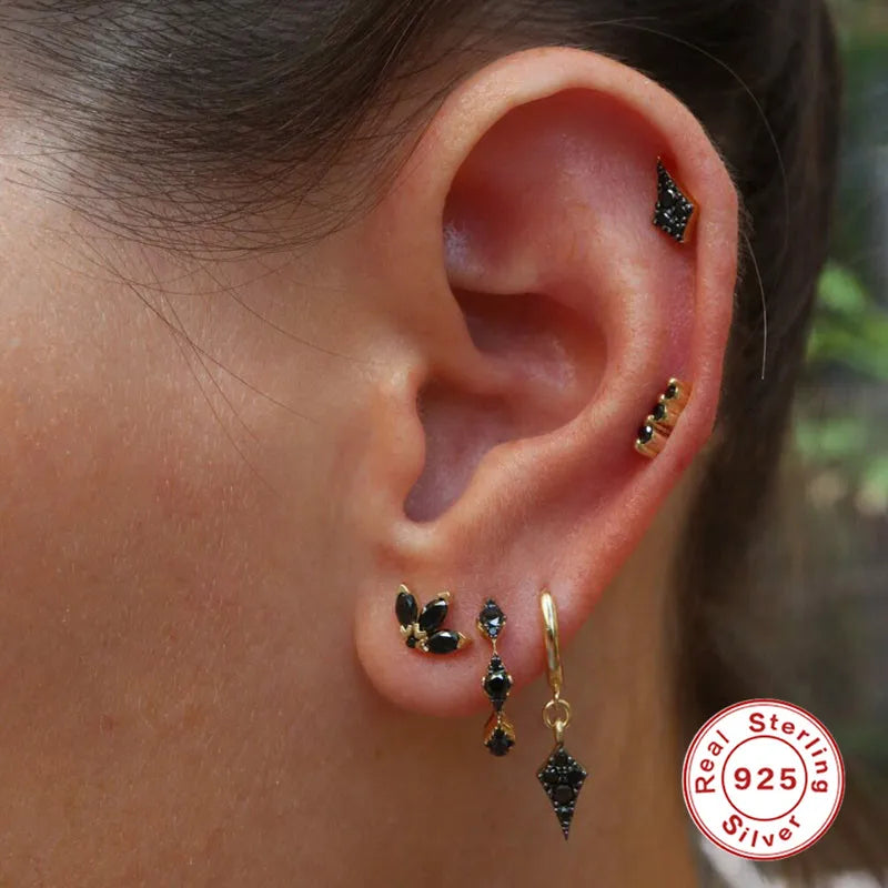 - 925 sterling silver hoop earrings with four-leaf clover design