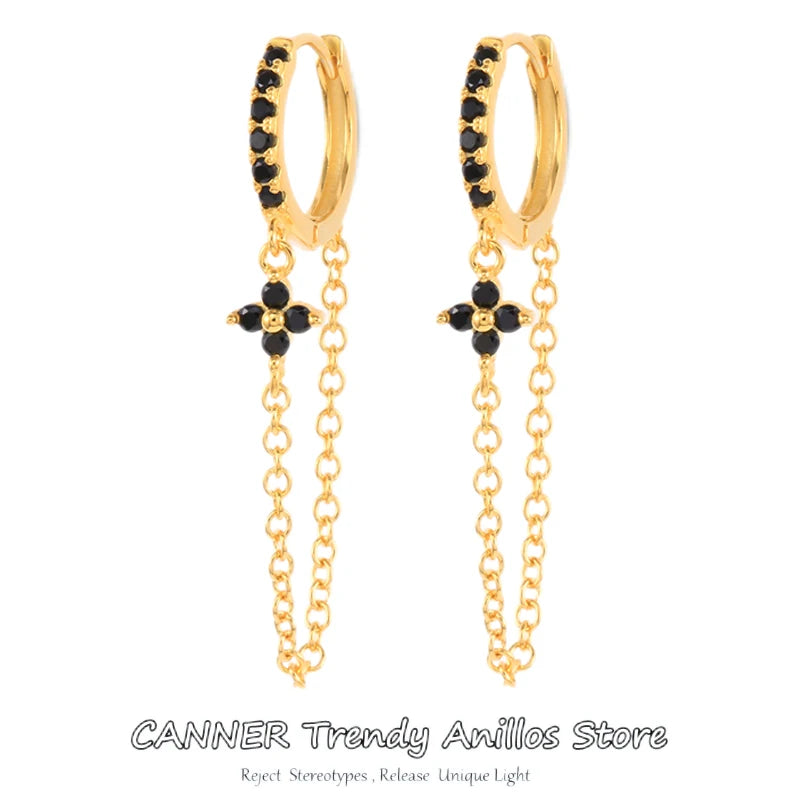 Add a touch of luck to your outfit with these elegant silver hoop earrings featuring a four-leaf clover design. Made with high-quality 925 sterling silver and sparkling zircon stones, these earrings are perfect for everyday wear or special occasions.