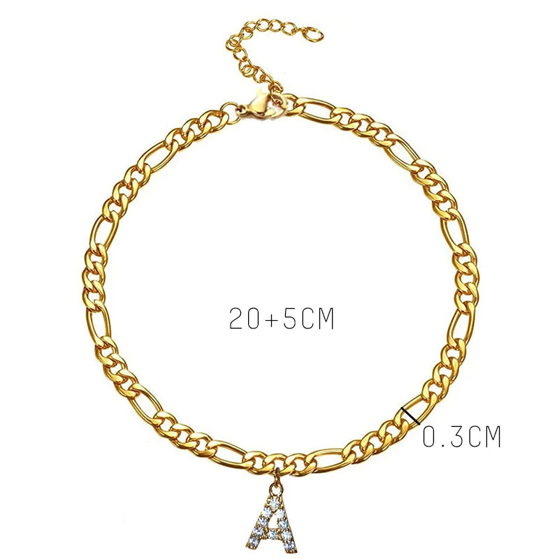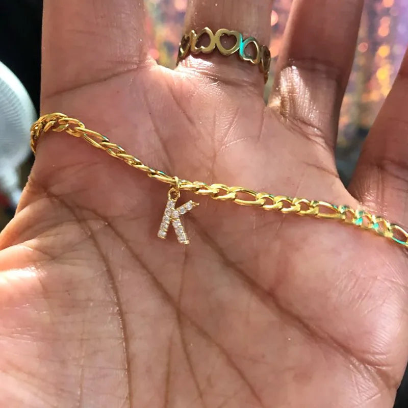 - Stylish initial letter charm anklet with zircon accents