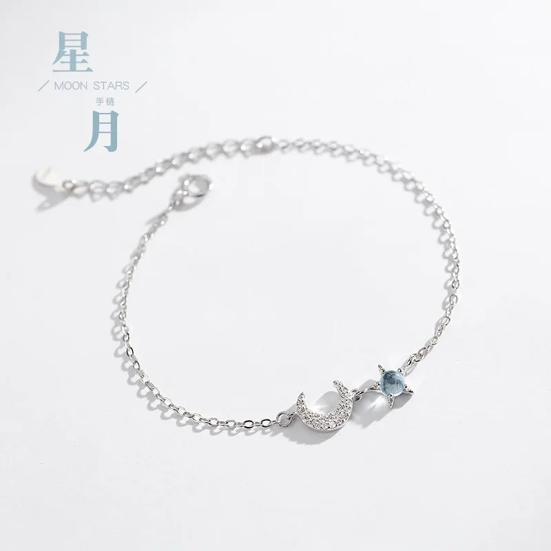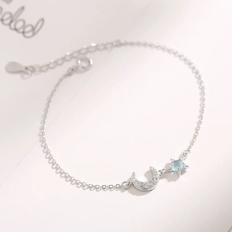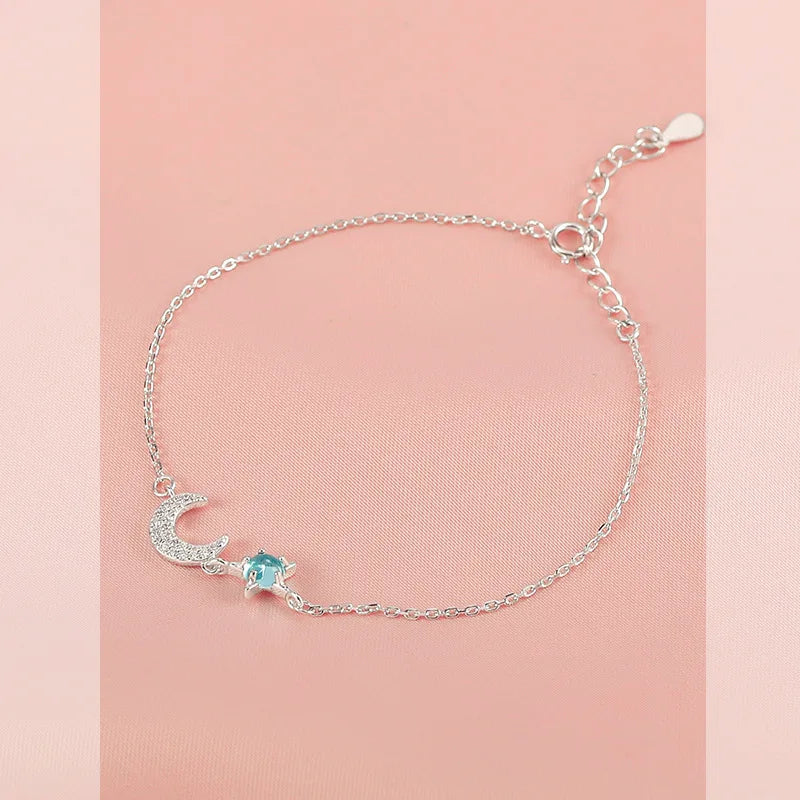 Zircon Star Moon Bracelet 925 Sterling Silver Jewelry