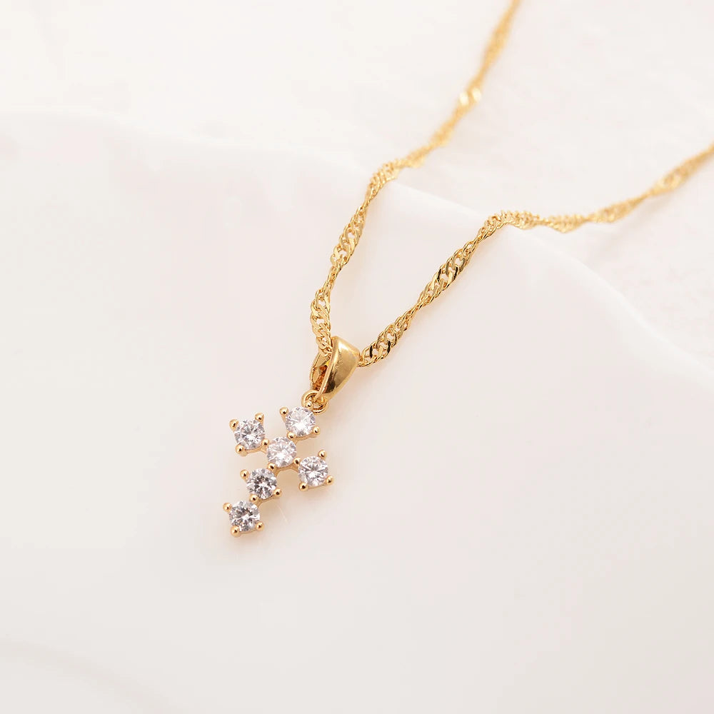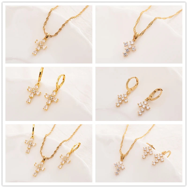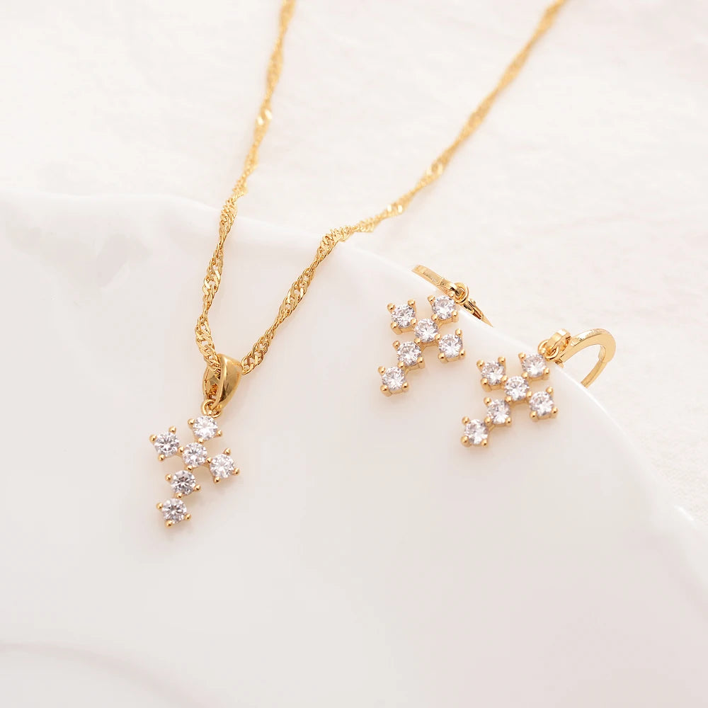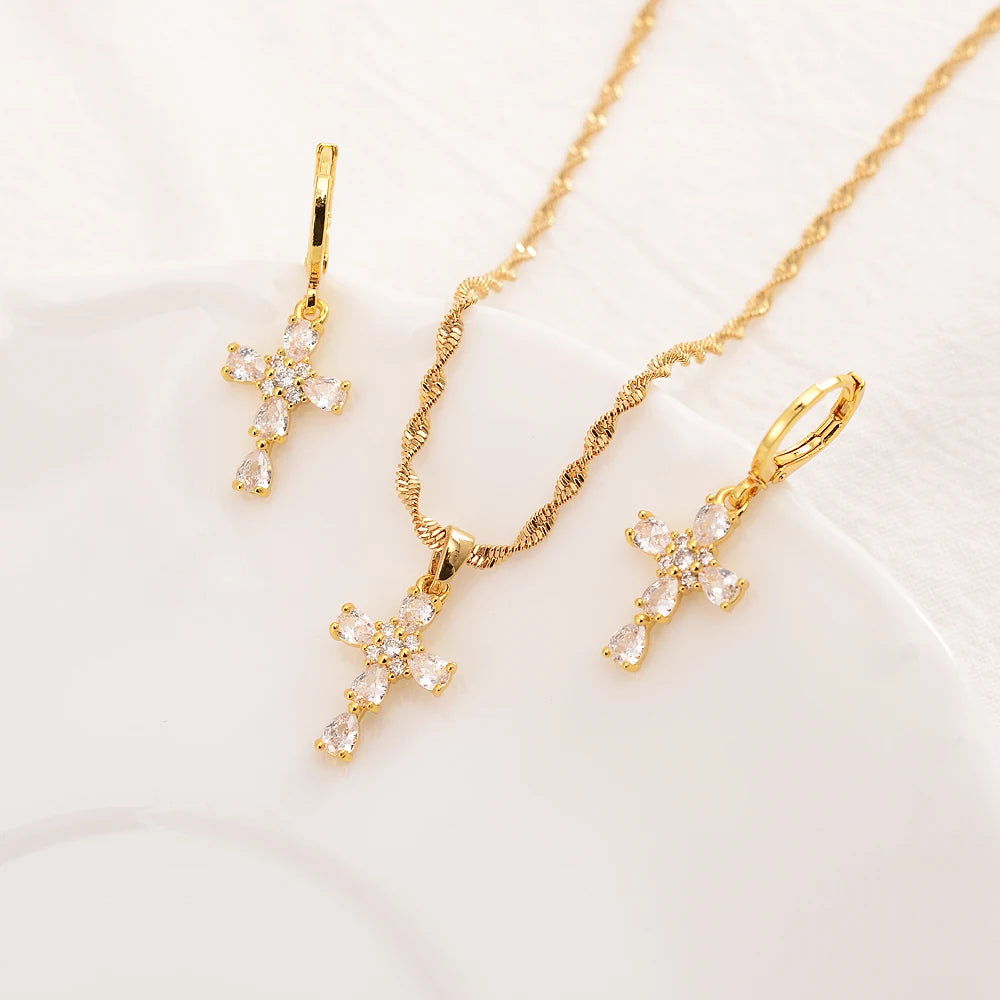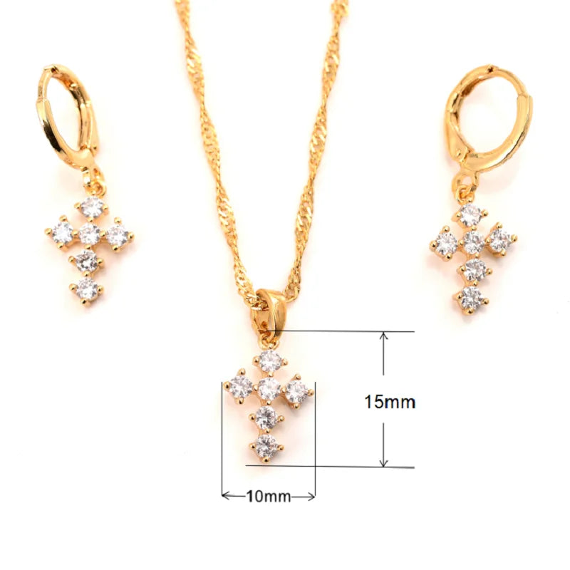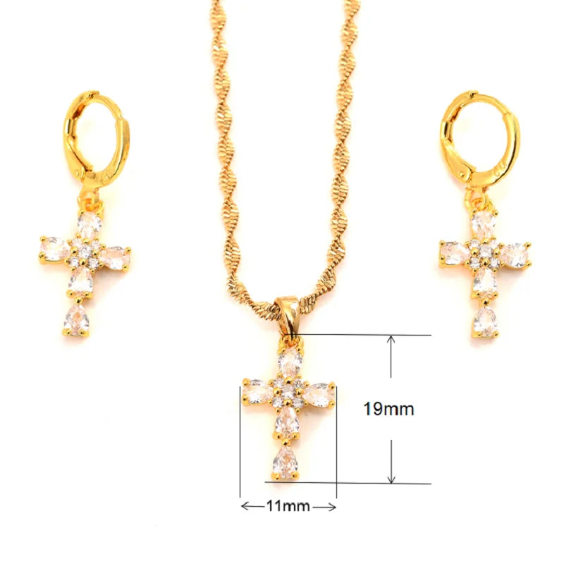 Complete your look with this stunning zirconia cross crystal pendant necklace and earrings set. Perfect for parties or birthdays.
