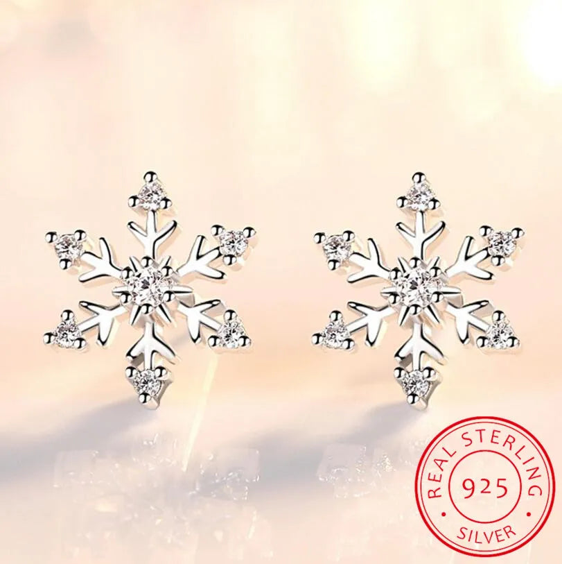 Elegant zirconia snowflake stud earrings made of high-quality 925 sterling silver. Perfect as a wedding party gift or for special occasions.